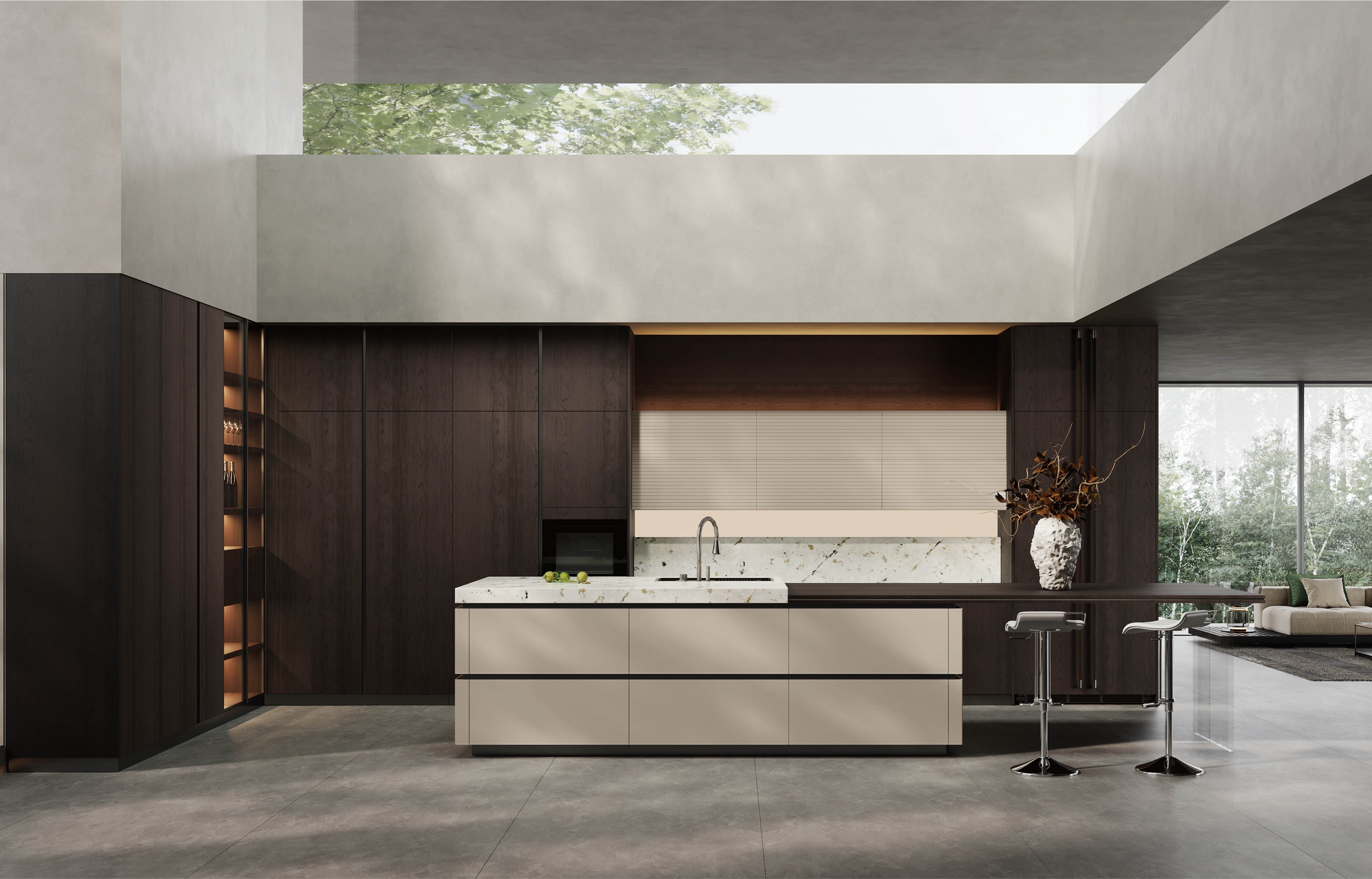 通过尊龙·Z6厨柜量体裁柜,定制出适合主厨下厨的烹饪区和洗涤区的舒适高度。
